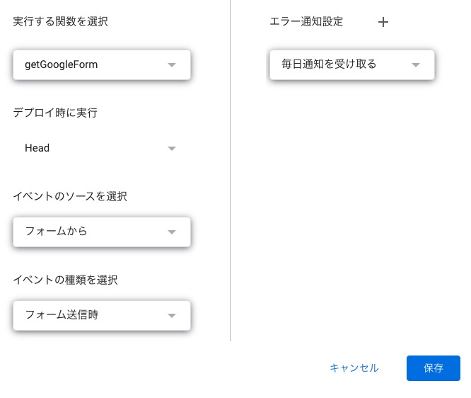 const form = FormApp.openByUrl('https://docs.google.com/ここにGoogle FormのURLを入力します/')
